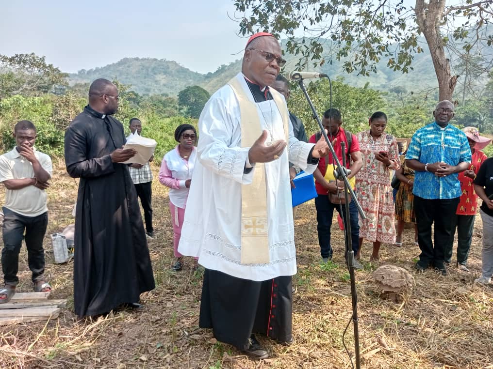 Ce mercredi 03 novembre 2025, Cardinal Dieudonné Nzapalainga a présidé la cérémonie de pose de première pierre du futur presbytère du sanctuaire marial de Ngoukomba.